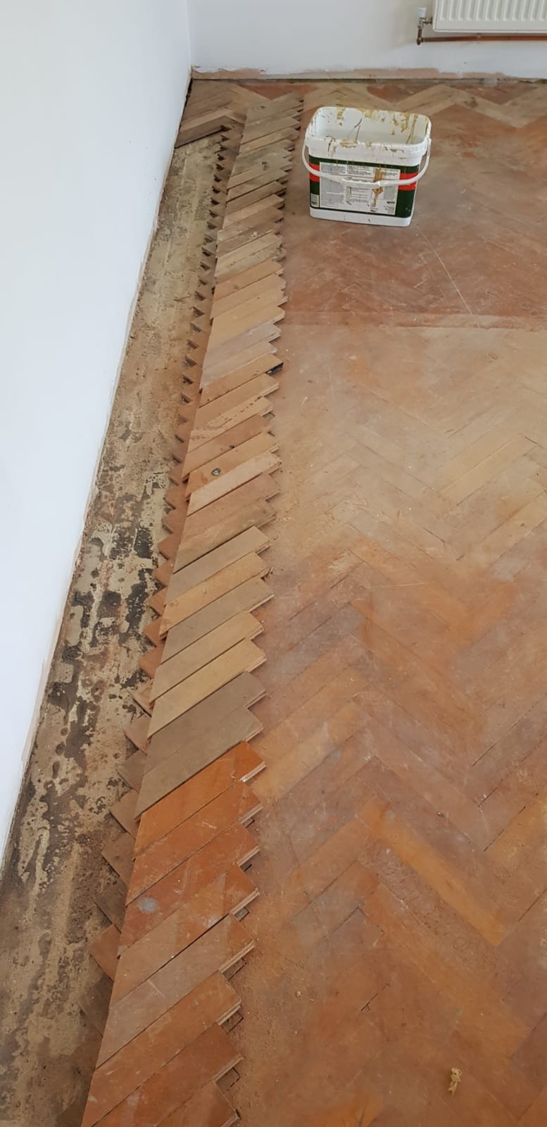 Our client had completely renovated their house and the last room to do was the living room – they had removed the parquet wood flooring around the edges in order to install central heating and pipes and now wanted them not only replaced but diagonal into the wall before the skirting was replaced rather than parallel as before.