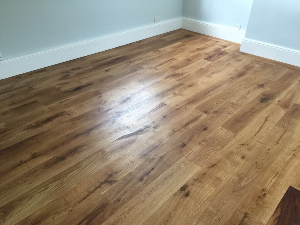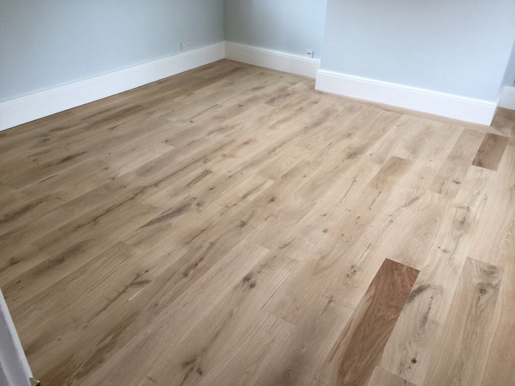 We received a call from a builder who found us on The Ultimate Floor Sanding website to carry out a survey on a brand new oak floor. The floor went from the dining room, office, three walkways leading to a large living area. Upon talking to the owners it transpired that the floor had been sanded and a finish applied but they had left the overall look with a ‘milky’ finish. What had been discussed with the company and what they actually done were two different things entirely. No gaps were filled, they had requested for the knots to be filled as they were snagging on their feet but these were also not done. So very far off the finish they wished for!